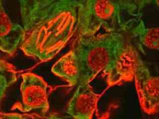 The Nikon MicroscopyU Confocal Image Gallery features digital image sequences captured using a Nikon PCM-2000 confocal microscope scanning system coupled to an Eclipse E-600 upright microscope. Successive serial optical sections were recorded along the optical axis of the microscope over a range of specimen planes.
