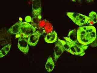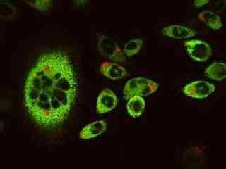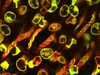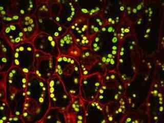 Single and dual-color fluorescence imaging in laser scanning confocal microscopy.
