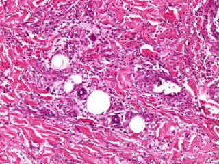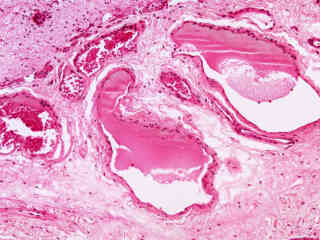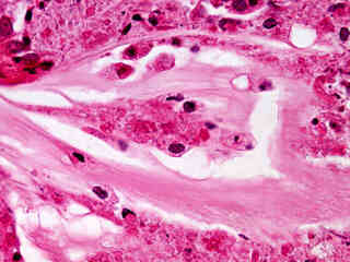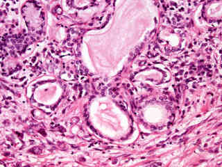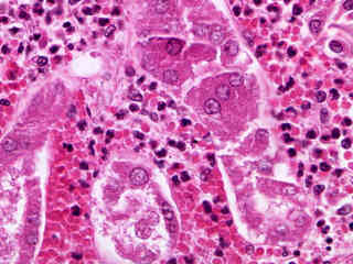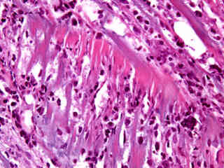 The investigation of disease in humans has, understandably, been one of the primary focal points in medicine for thousands of years. The image gallery presented in this section attempts to illustrate, through use of the brightfield microscope, many of the pathological conditions that are readily observed in stained human specimens. Each image was chosen for artistic merit, photographic quality, and content. Note that several of the images in this gallery might not depict every aspect of the pathological condition under which they are catalogued.