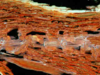 Autofluorescence in plant tissues (fern tissue section) is represented in Figure 2(f), and demonstrates the wide emission spectrum of endogenous fluorophores in these specimens. In the violet region, chlorophyll has an absorption band with a high extinction coefficient and produces a significant amount of fluorescence when excited with wavelengths between 390 and 420 nanometers. Note the presence of spectral bleed-through from autofluorescence emission in the green and red spectral regions, which is strongly reminiscent of a darkfield image. In most cases, images captured with the V-2A filter combination exhibit more background fluorescence than the blue fluorescent protein (BFP) bandpass set and the V-1Alongpass filter combination.