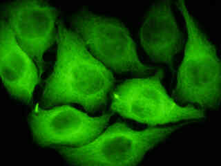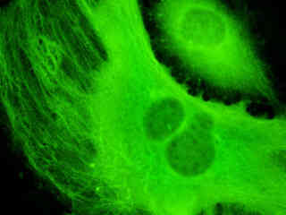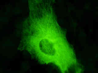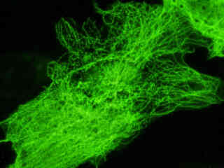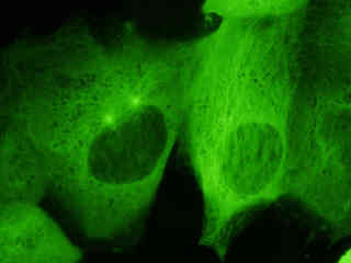 The collection of specimens illustrated in Figure 1 demonstrates the effectiveness of the Nikon YFP HYQ filter combination for imaging a series of cell lines containing the chimeric EYFP plasmid vector that expresses a fluorescent fusion protein chimera targeted at the intracellular microtubule network. Susceptible adherent cell cultures were transfected with the appropriate vector using proprietary lipophilic reagents, and were then cultured for a period of at least 24 hours in nutrient medium supplemented with fetal bovine serum to allow high expression levels of the fluorescent fusion protein.